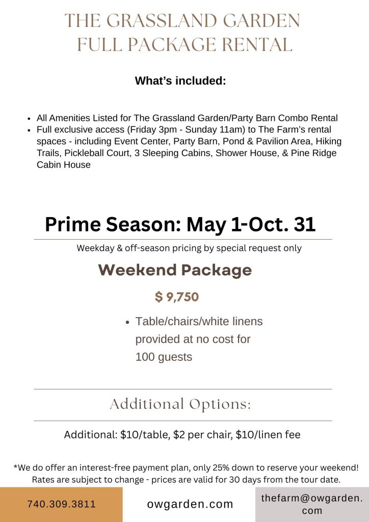 We have three standard options below for wedding packages. If you are looking for something a bit more unique, we are more than happy to work with you to come up with a package that works for you!
